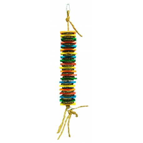Ideaal speelgoed van natuurlijke materialen, een echt topper voor parkieten en kleine papegaaien.