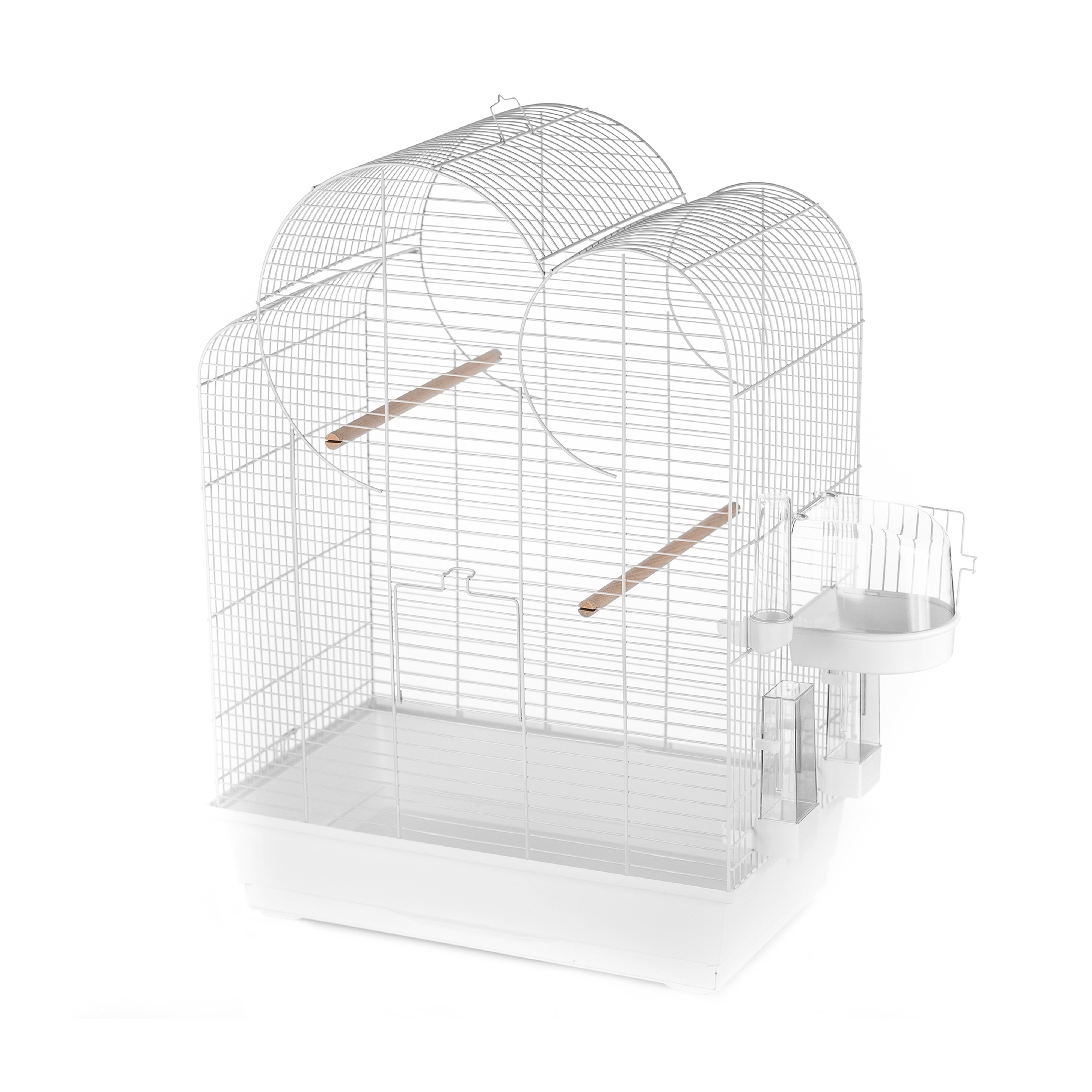 De vogelkooi Eliza van duvoplus is een kwalitatieve kooi inclusief badhuis, 2 eetbakjes en een drinkfontein. Er zijn ook 2 zitstokken inbegrepen en is dus geschikt voor 2 vogels. Ze heeft een uitschuifbare lade om eenvoudig het bodemzand te verversen.