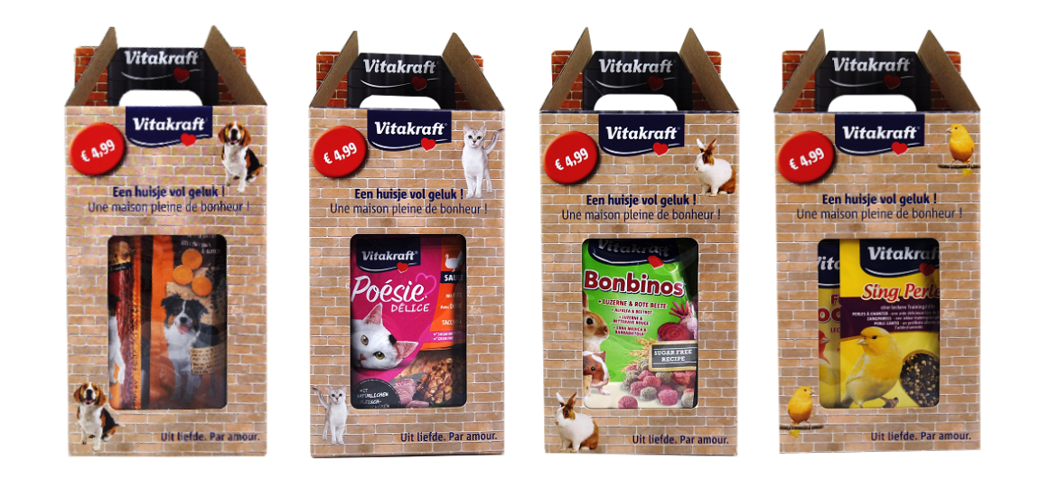 We hebben de ‘huisjes vol geluk’ verkrijgbaar voor de hond, kat, vogel en knaagdier en kost slechts € 4,99 (winkelwaarde producten ca € 10,00). Laat uw huisdier smullen van de lekkerste snacks. Deze super toffe pakketjes vindt u bij alle huisdierafdelingen in onze winkel, maar vanzelfsprekend ook op onze website!